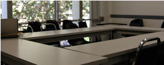 | Gurukul SeminarRoom features in-the-round seating for 25, with awall-mounted Panasonic 50” widescreen monitor with stereo speakers. A machinerack with DVD, VCR and Laserdisc players is connected to the display, and thereis an additional VGA cable and stereo mini cable attached, should a presenterwish to connect their laptop to the display. The room also has a largewhite-erase board for teachers to do their lectures. |